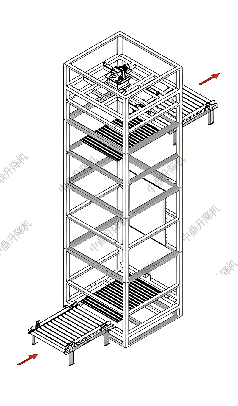 四柱式結構的Z型往復式提升機是一種靈活、高效的垂直輸送設備,特別適用于需要從對側或前后方向進行裝卸的場合。